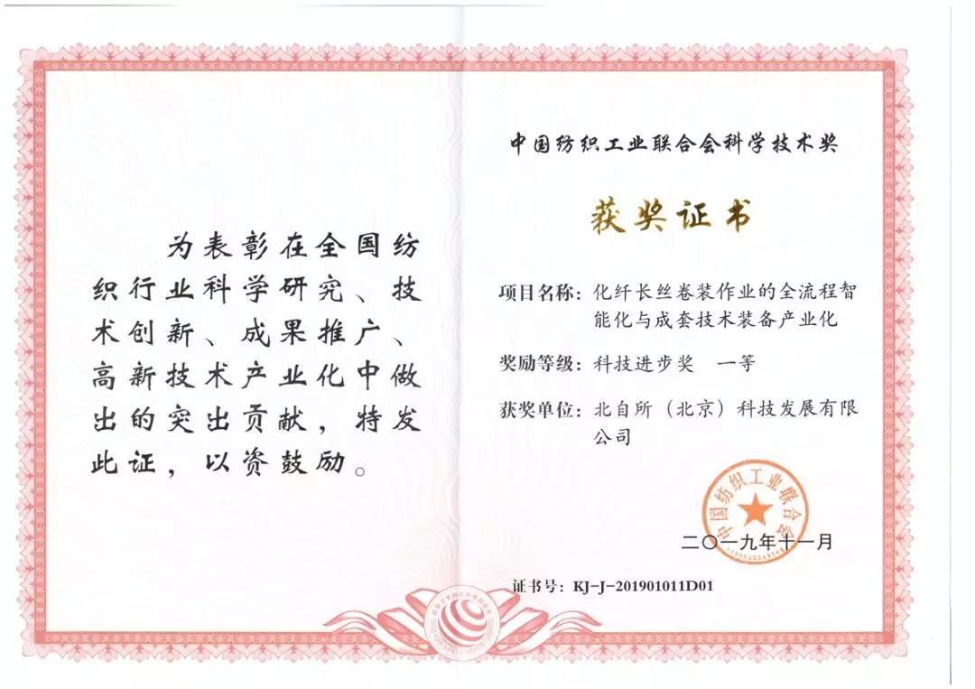 會上,北自科技主導研發(fā)的“化纖長絲卷裝作業(yè)的全流程智能化與成套技術(shù)裝備產(chǎn)業(yè)化”項目在多個評選項目中脫穎而出,榮獲“科技進步獎·一等獎”的殊榮。