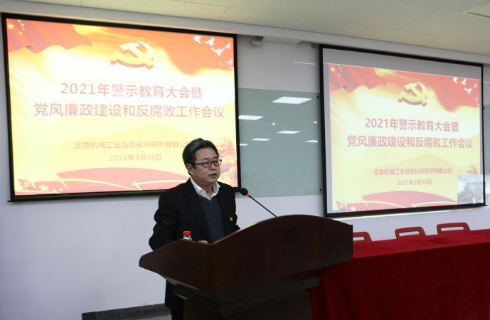 3月16日,北自所召開2021年警示教育大會(huì)暨黨風(fēng)廉政建設(shè)和反腐敗工作會(huì)議。北自所黨政領(lǐng)導(dǎo)班子、中層干部、黨支部委員共50余人參加了會(huì)議。