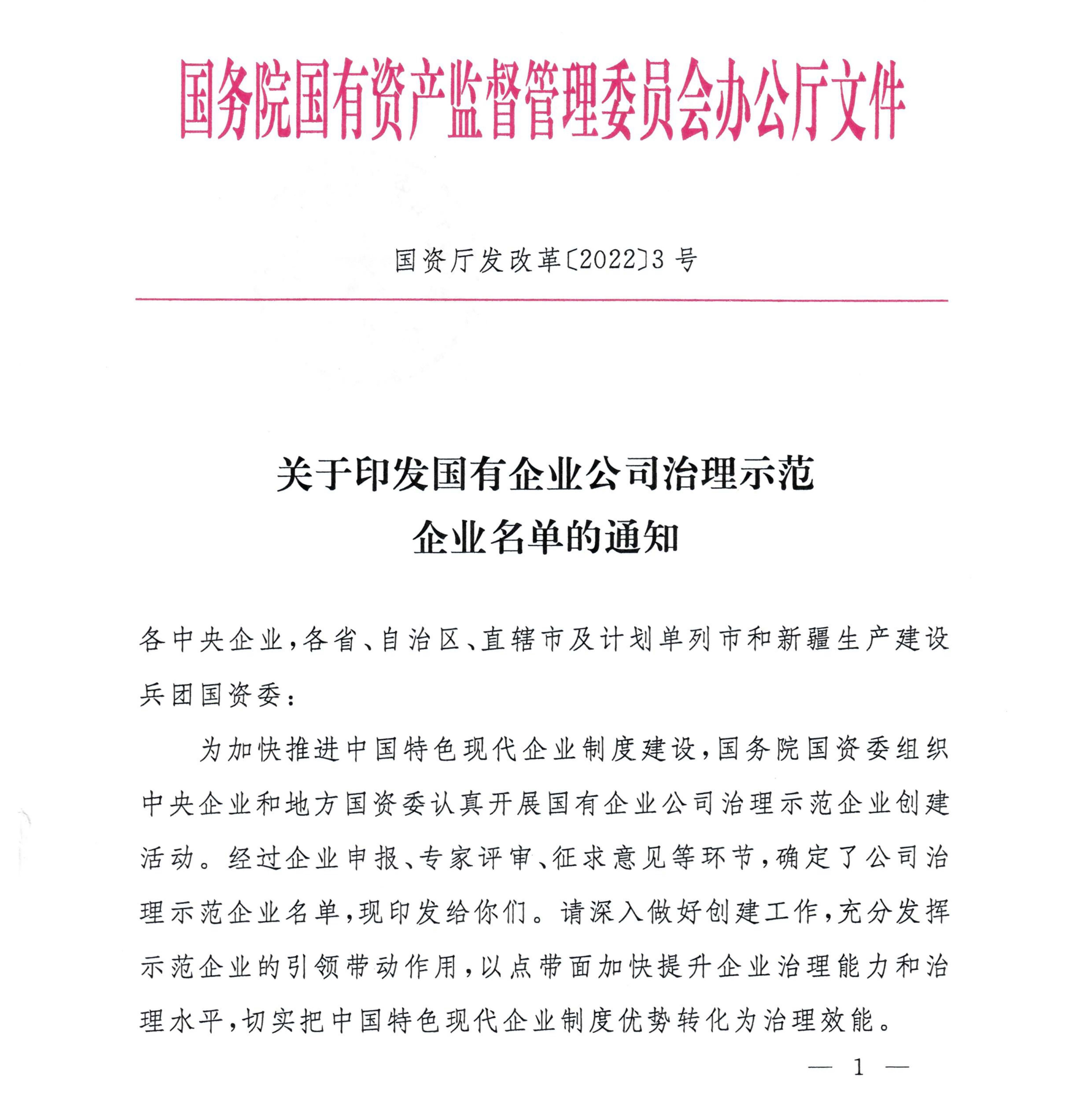 為加快推進(jìn)中國特色現(xiàn)代企業(yè)制度建設(shè),落實(shí)“兩個(gè)一以貫之”要求,國務(wù)院國有資產(chǎn)監(jiān)督管理委員會(huì)(以下簡稱“國務(wù)院國資委”)組織中央企業(yè)和地方國資委認(rèn)真開展國有企業(yè)公司治理示范企業(yè)創(chuàng)建活動(dòng)。